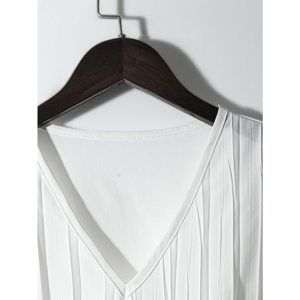 Chic V-Neck Top: Features soft pleating and a flattering tie waist for a balanced silhouette.