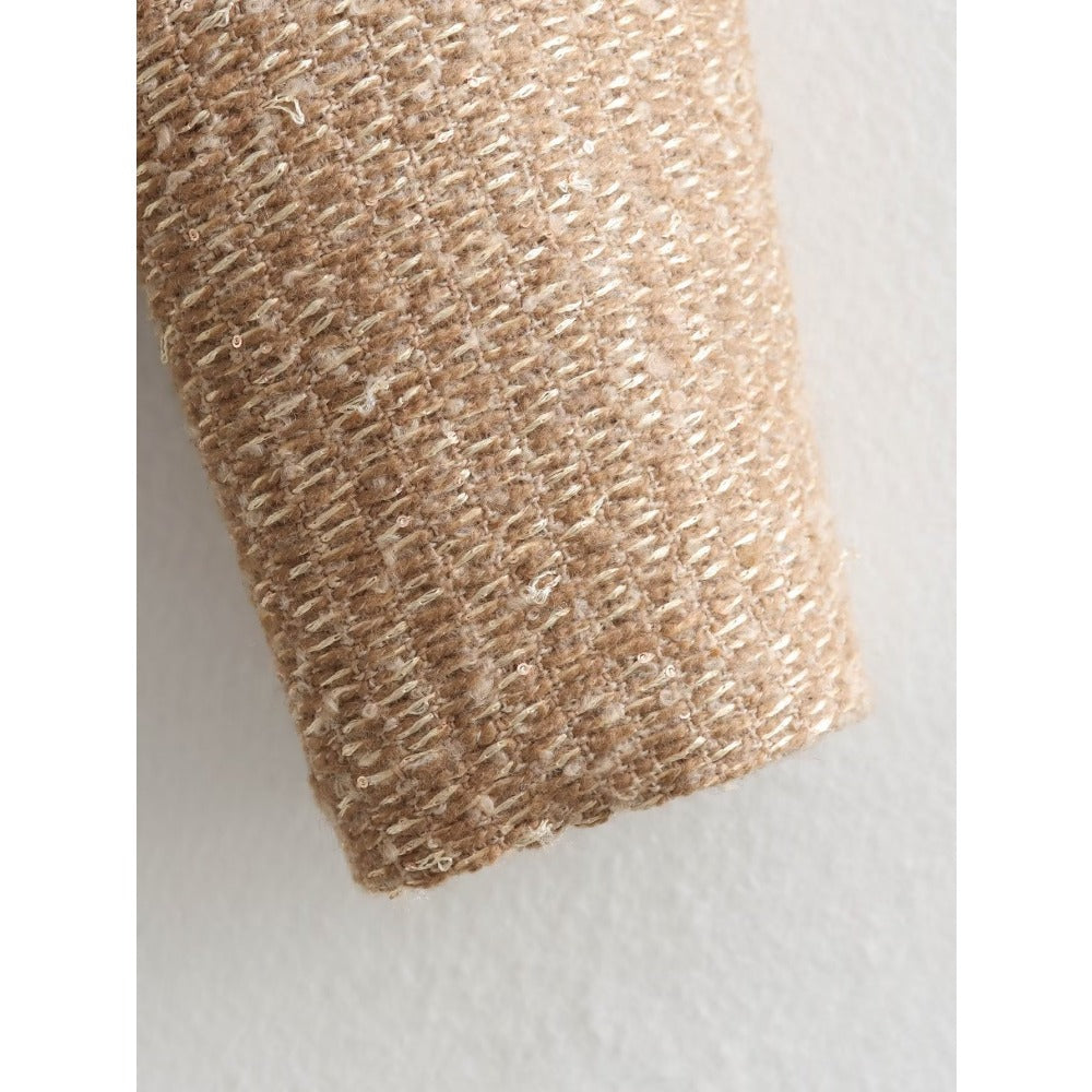Beige tweed fabric: Adds texture and depth with a timeless woven finish.