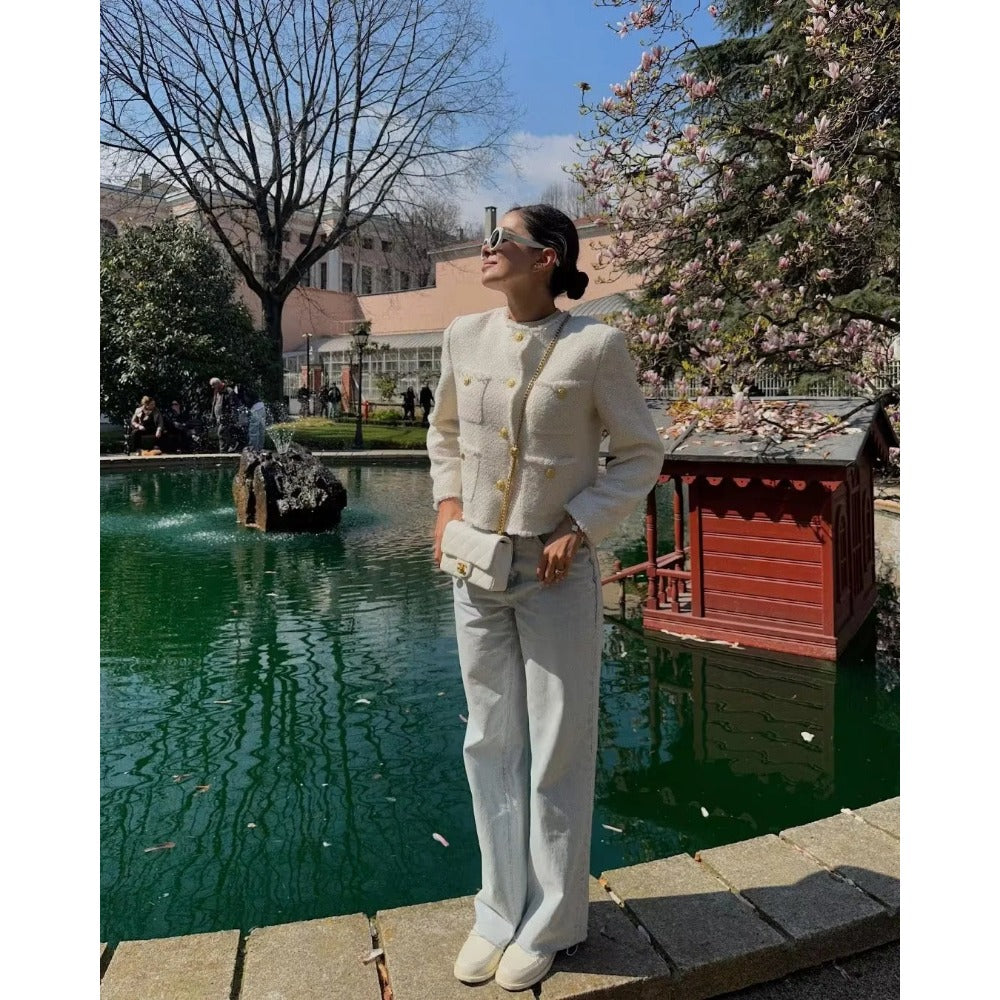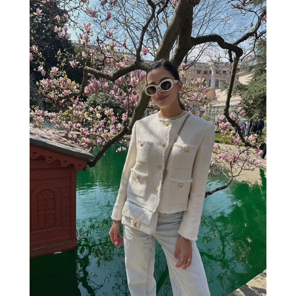 Tweed Button Up Long Sleeve Jacket for Women - Gianna