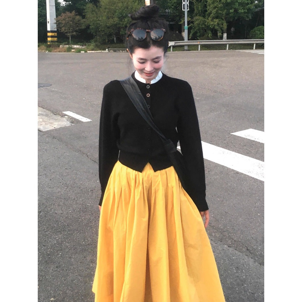 Yellow High Waist Maxi Skirt with Pleats for Women - Rosa